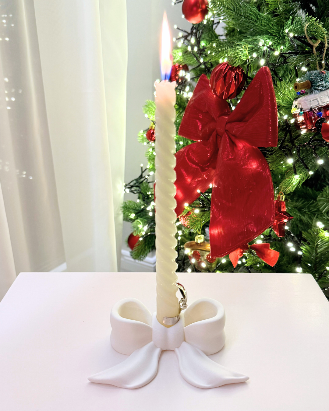 Sukurk šventinę nuotaiką su kaspino formos žvakide – elegantišku akcentu, kuris pripildys tavo namus jaukumo ir šviesos.